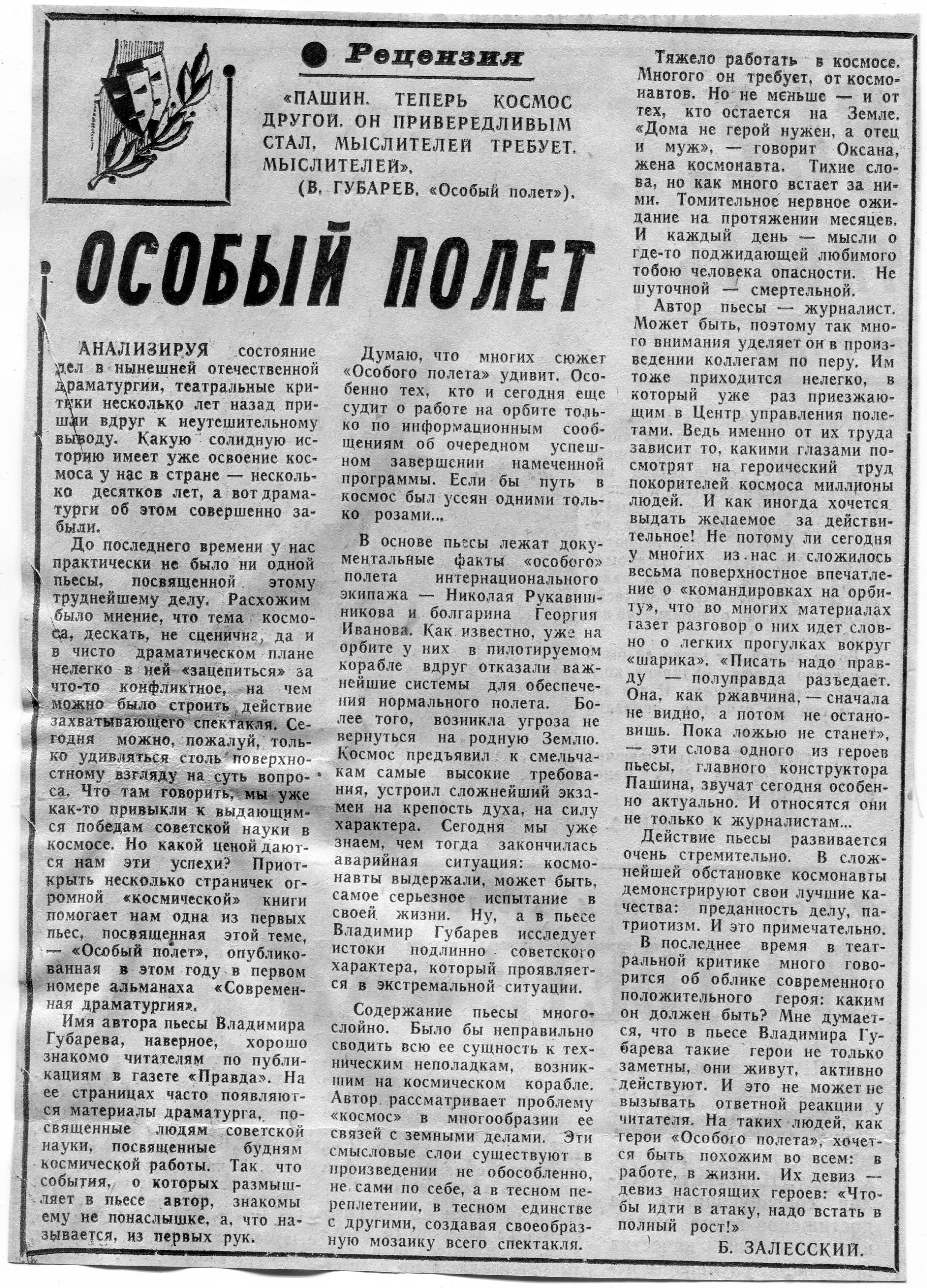 Залесский, Б. Особый полет / Б. Залесский // Трактор. - 1983. - 13 окт.
