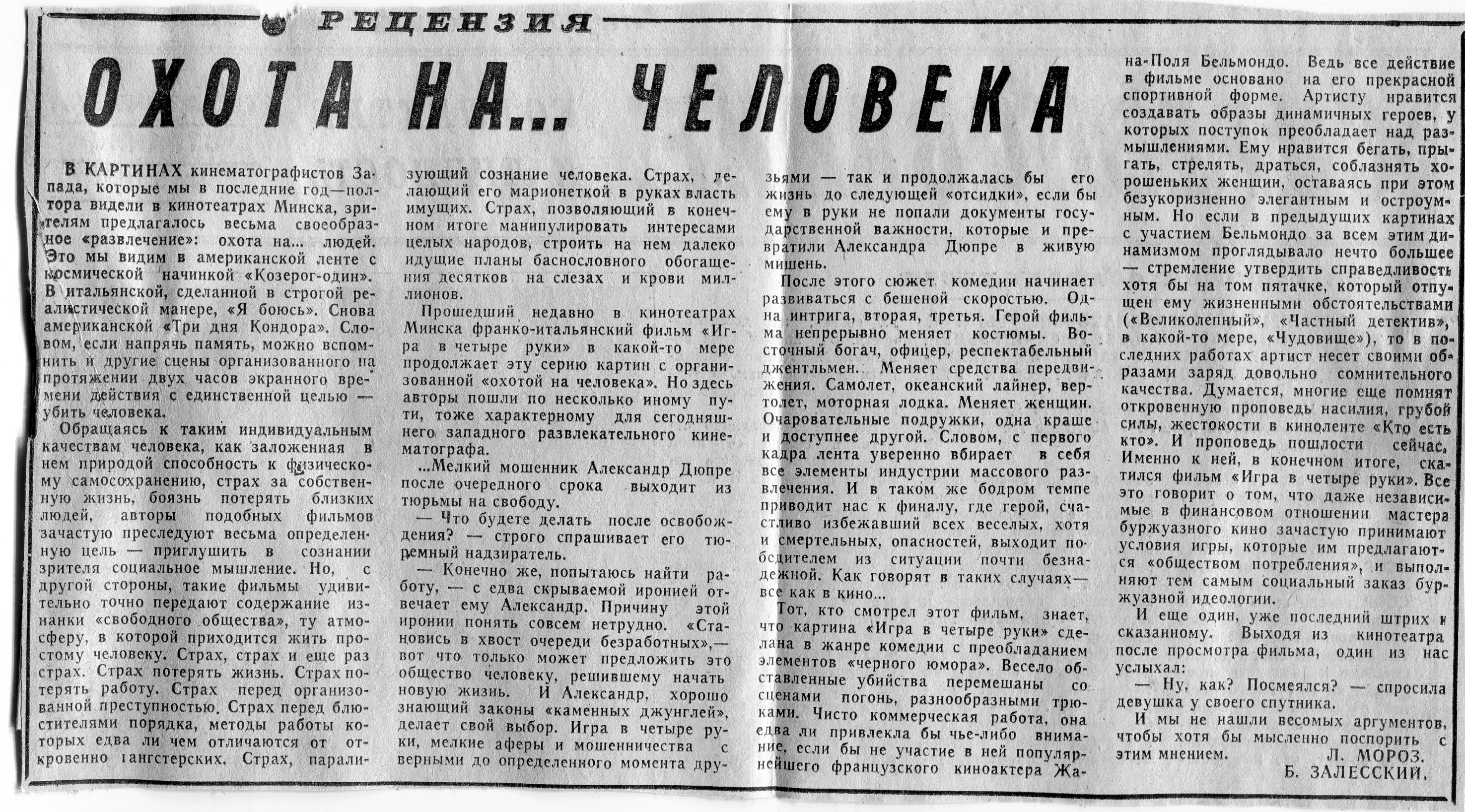 Залесский, Б. Охота на ... человека / Б. Залесский, Л. Мороз // Трактор. - 1982. - 27 апр.