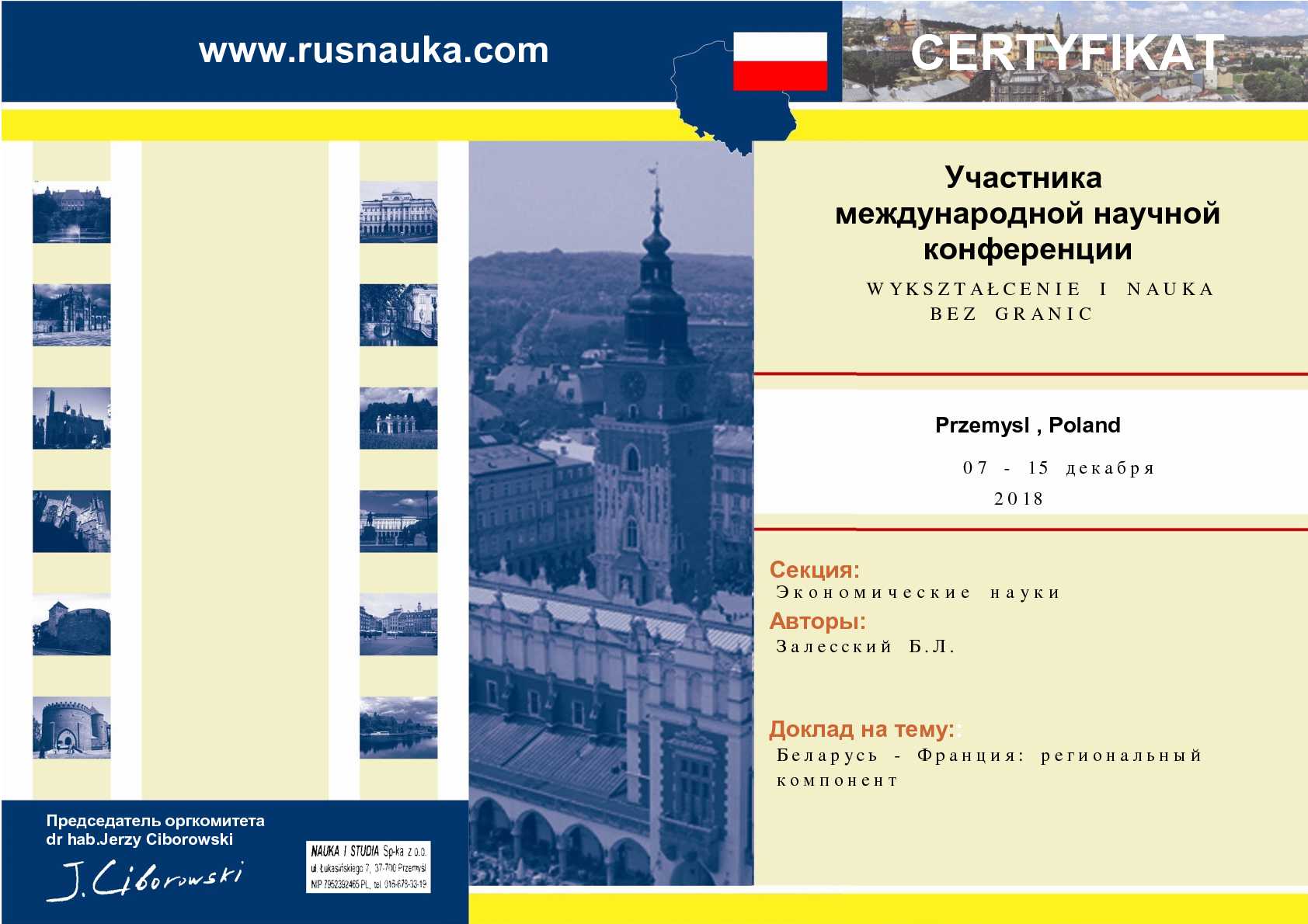 "Беларусь - Франция: форматы координации партнерства" (2018)