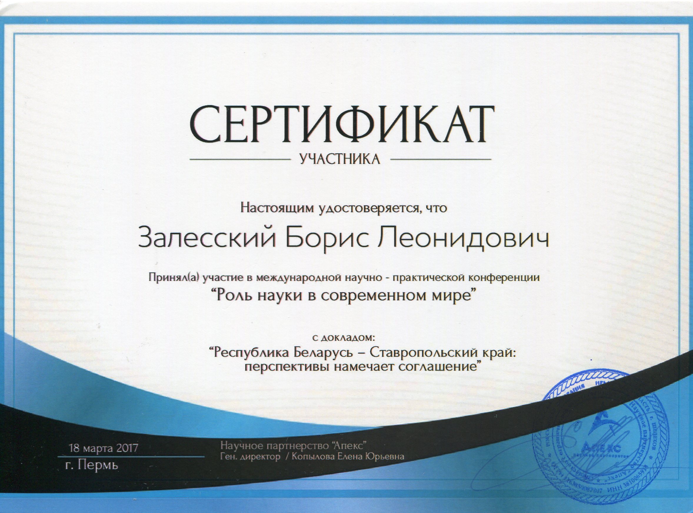"Республика Беларусь - Ставропольский край: перспективы намечает соглашение" (2017)