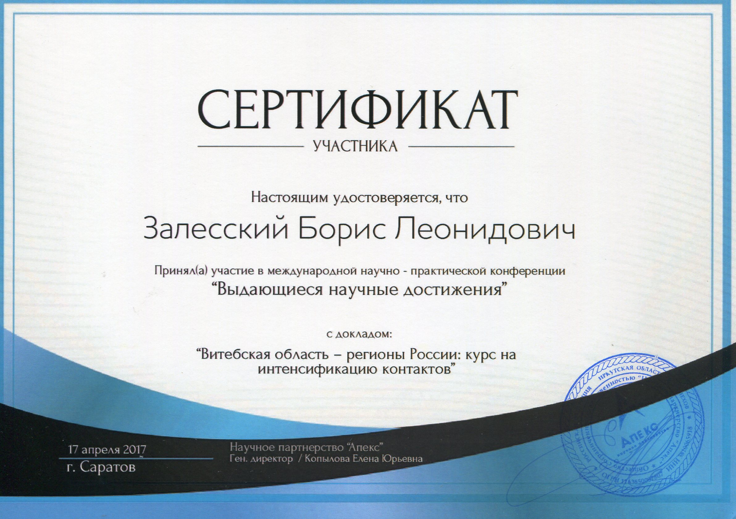 "Витебская область - регионы России: курс на интенсификацию контактов" (2017)